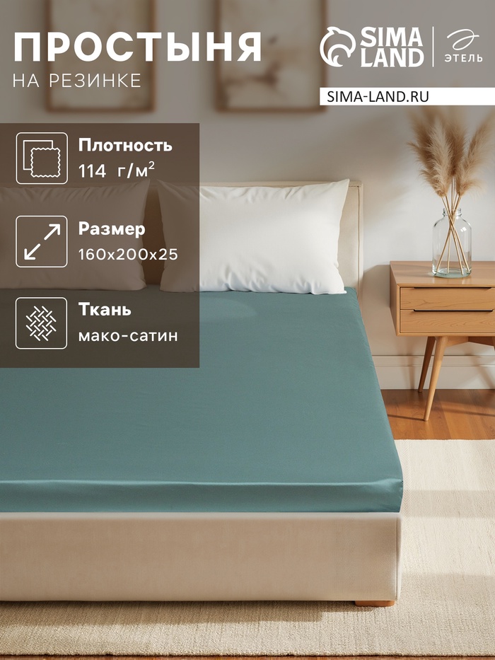 Простыня на резинке 2-спальная «Этель» Quiet shade, 180×200+25 см, жатый хлопок