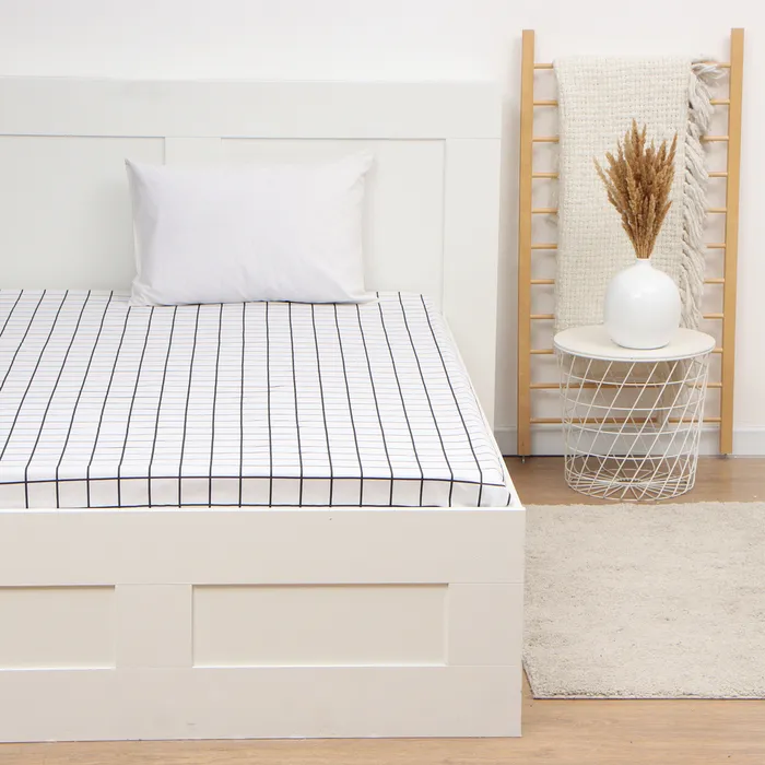 Простыня 1,5сп Экономь и Я "Клетка" цв.белый, 150*215±3 100% хлопок, бязь, 120 гр/м2