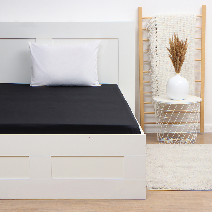 Простыня 1.5 спальная «Этель» Jet black, 150×215 см, мако-сатин, хлопок 100%