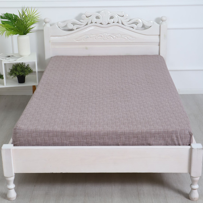 Простыня на резинке 2-спальная «Атра. Контур», 160×200+20 см, бежевая, бязь