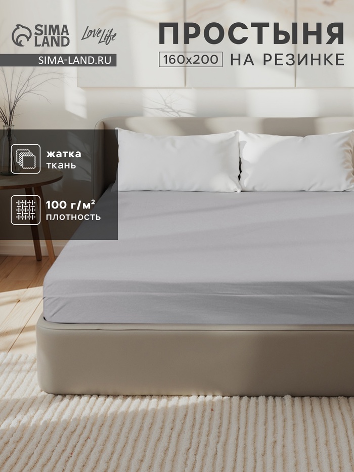 Простыня на резинке 2-спальная LoveLife, 160×200+25 см, серая, жатка