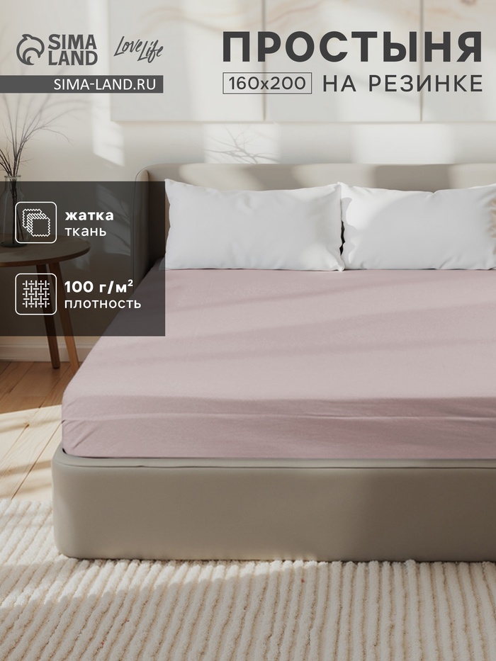 Простыня на резинке 2-спальная LoveLife, 160×200+25 см, бежевая, жатка