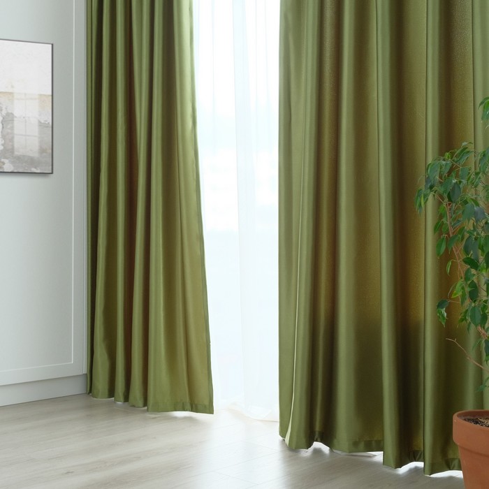 Штора портьерная "Этель" ширина 200 см, высота 250 см, цвет фисташковый, глянцевая