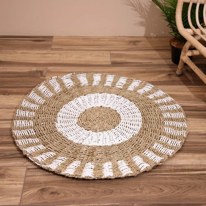 Ковёр на пол круглый натуральный плетёный «Кольца», из водорослей, 80 см