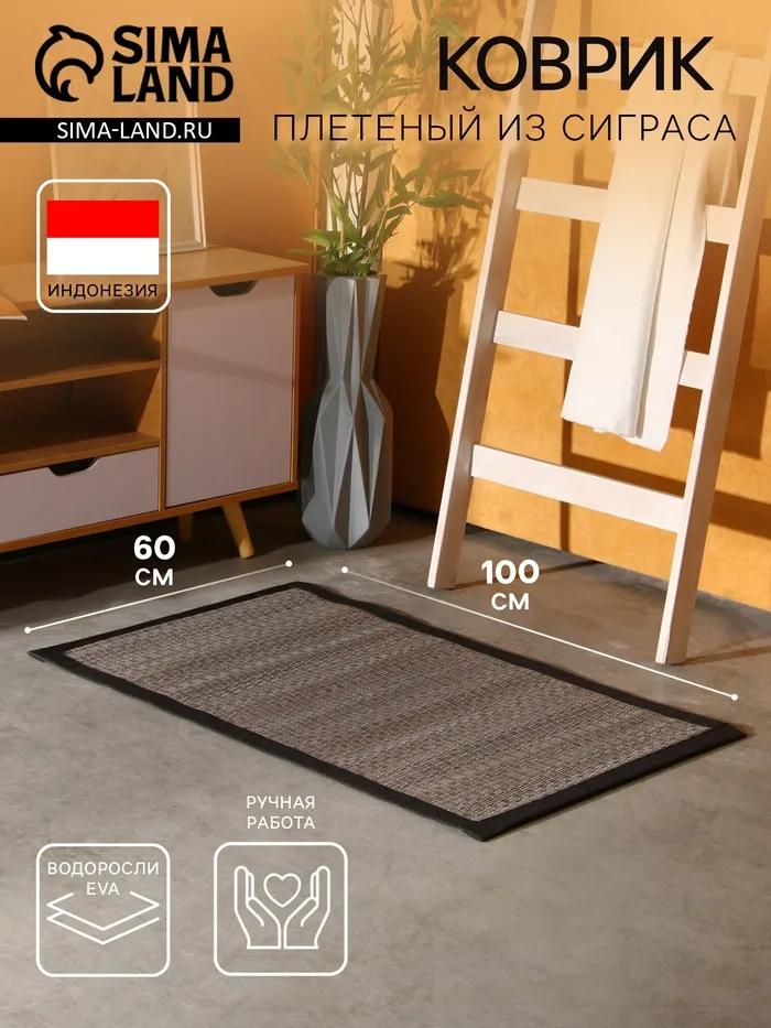 Коврик плетёный из сиграса, 100×60×0.7 см