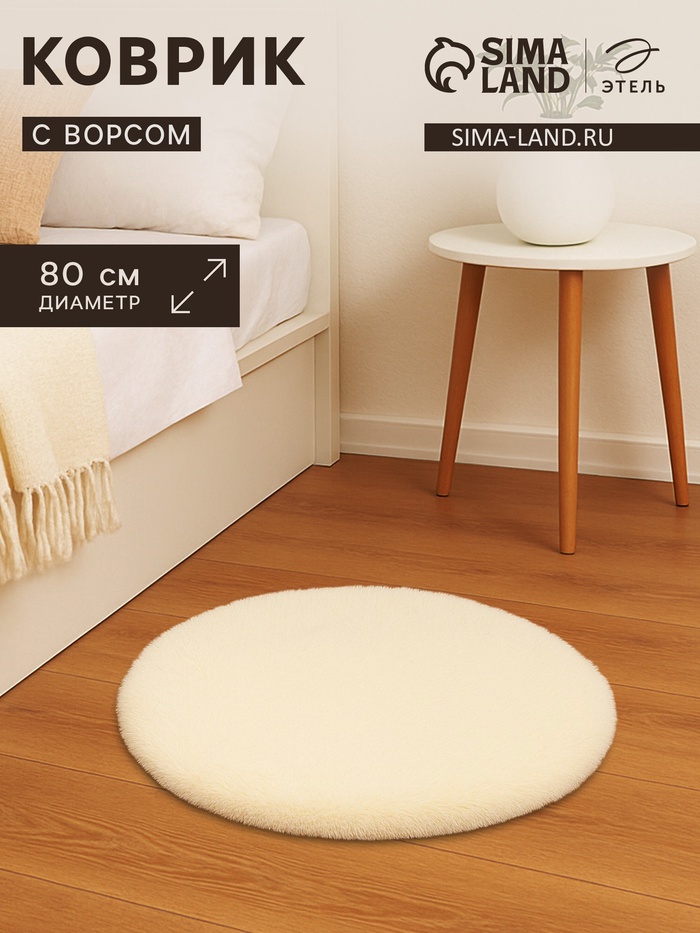 Ковер с ворсом «Этель», d=80 см, бежевый