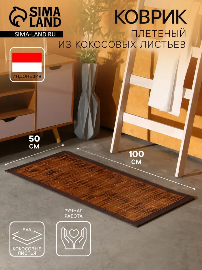 Коврик плетёный из кокосовых листьев, 100×50×0.8 см