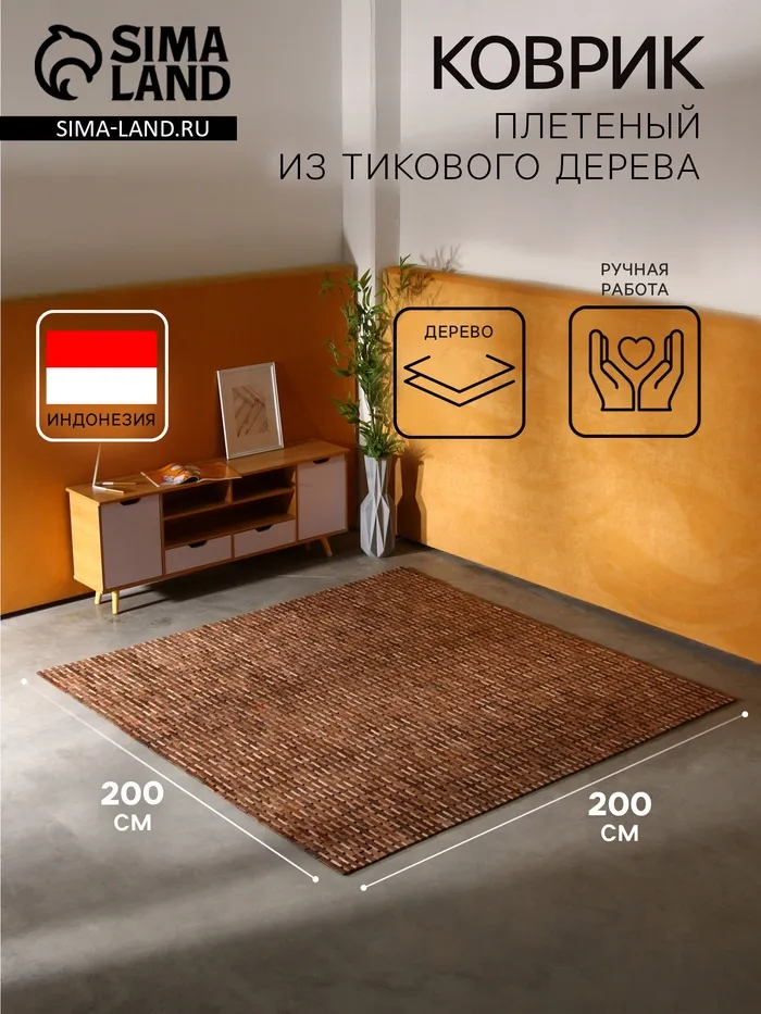 Коврик плетёный из кокосовых листьев, 200×200×0.8 см
