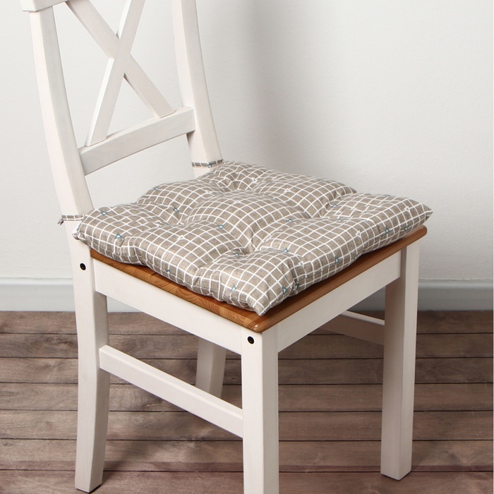 Сидушка на стул "Этель"Eucalyptus (клетка) 42х42см, 100% хлопок, саржа 190 г/м2