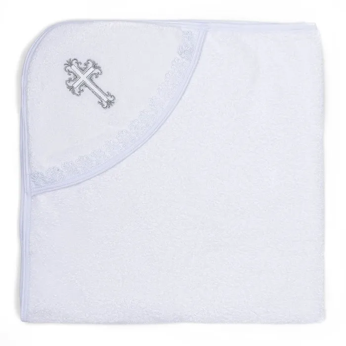 Полотенце-уголок для крещения с вышивкой, размер 100х100см, цвет белый, К40/1