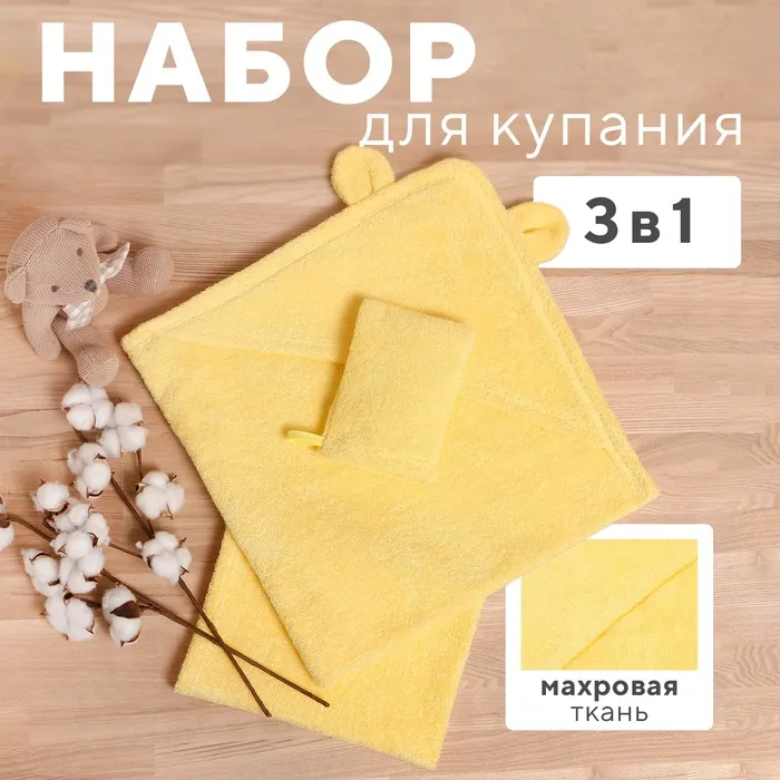 Набор для купания Крошка Я(полотенце-уголок 85*85±2см,полотенце 40*55см, рукавица) св-желтый