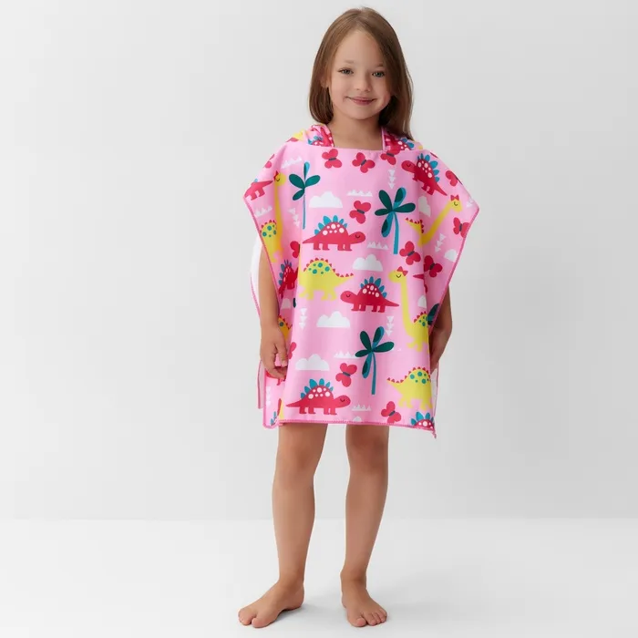 Полотенце-пончо детское LoveLife "Динозавры", цв. розовый, 60х120 см, 100% пэ, 230 г/м2
