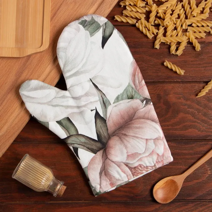 Варежка-прихватка "Этель" Пионы 20х27см,100% хлопок, ватин 250г/м2 (двухсторонняя)