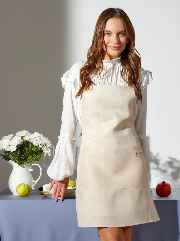 Фартук кухонный женский на завязках SL HOME "Olive" 95х140, 100% лён, 200г/м2