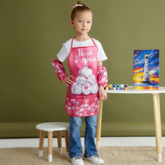 Набор детский для творчества Этель "Котики" фартук 49 х 39 см и нарукавники