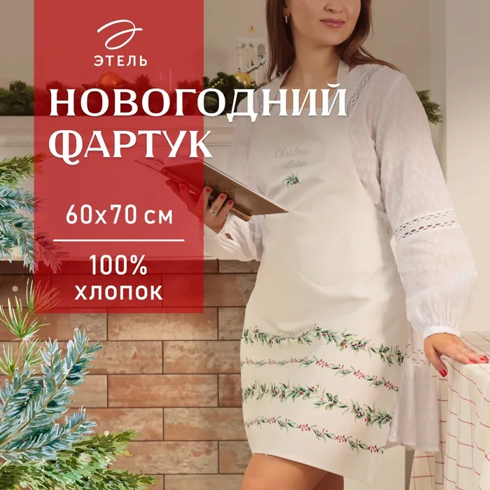 Фартук Этель "Новогодние веточки" 60х70 см, 100% хлопок, саржа 190 г/м2