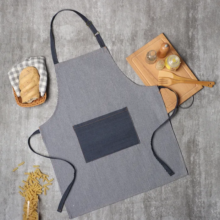 Фартук Этель джинсовый в полоску, цв. синий, 65% хл, 35% п/э