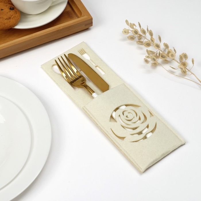 Конверт для столовых приборов «Доляна. Роза», цвет молочный, 9×25 см, 100% п/э, фетр