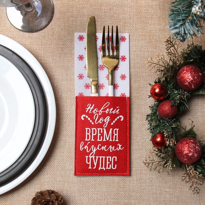 Набор конвертов для столовых приборов Доляна «Новый год», красный - 4 штуки