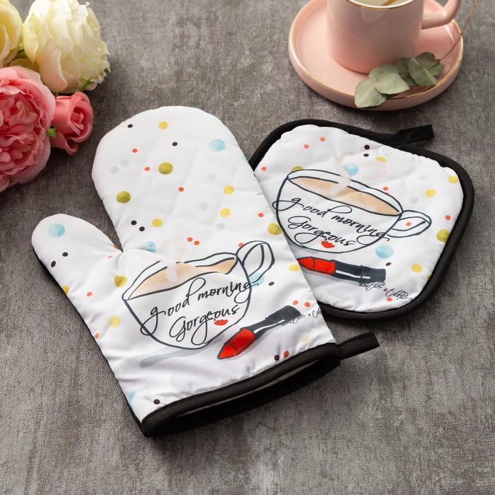 Кухонный набор «Доляна» Good morning: прихватка 17×17 см, рукавица 26×16 см