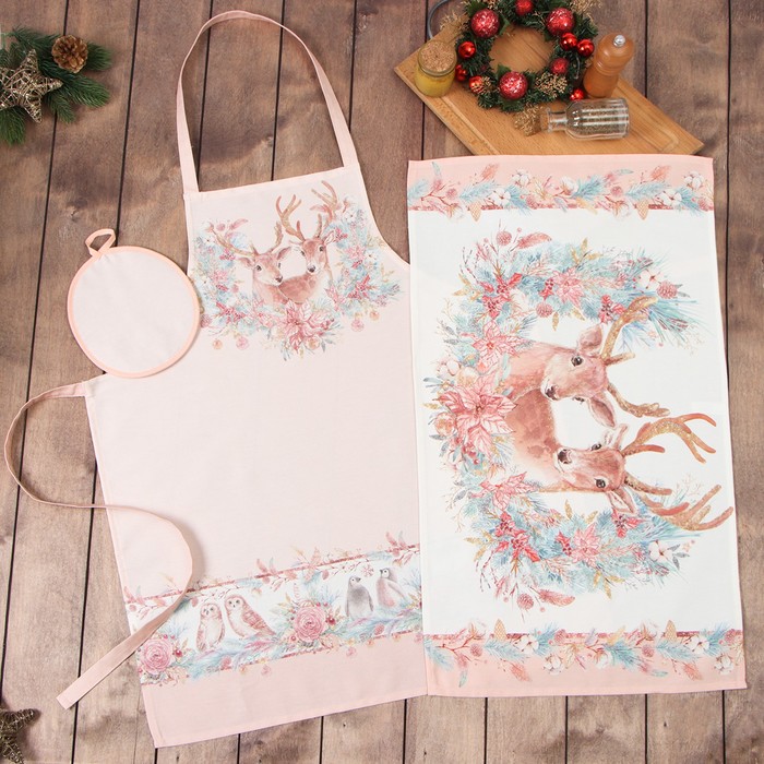 Набор новогодний подарочный "Этель" Pink magic, фартук, полотенце, прихватка