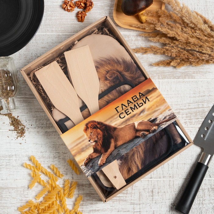 Набор подарочный «Доляна. Глава семьи»: варежка 20×28 см, прихватка 17×17 см, 2 лопатки