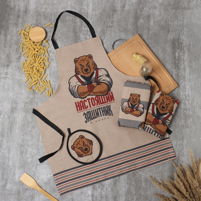 Кухонный набор Доляна "Настоящий защитник" 3 предмета : фартук 70х60 см,прихватка 20х20 см,полотенце 35х60см-2шт.