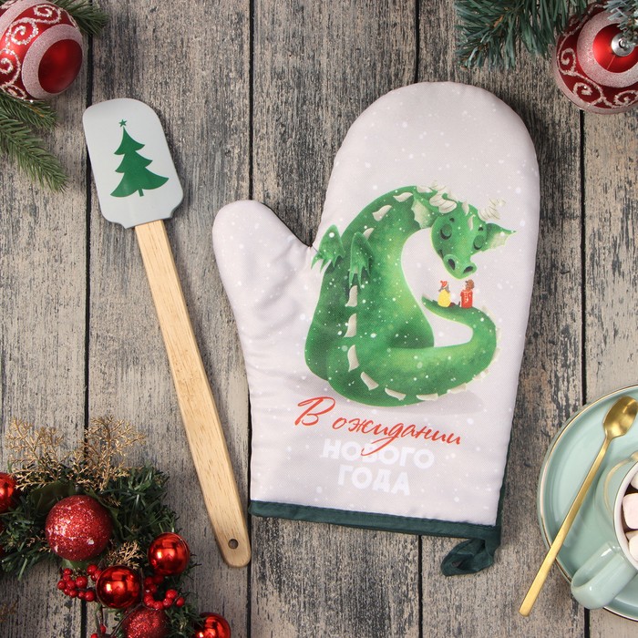 Набор новогодний подарочный Доляна "В ожидании НГ" : варежка-прихватка, лопатка силикон