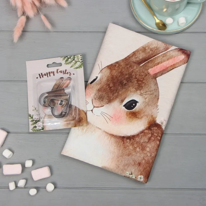 Набор «Пасхальный кролик»: полотенце 40×73 см, саржа 190 г/м², формочки для печенья
