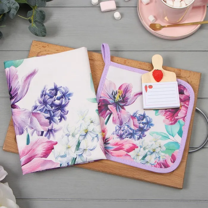 Набор подарочный Home cooking: полотенце, варежка-прихватка, кухонная лопатка, венчик, губка