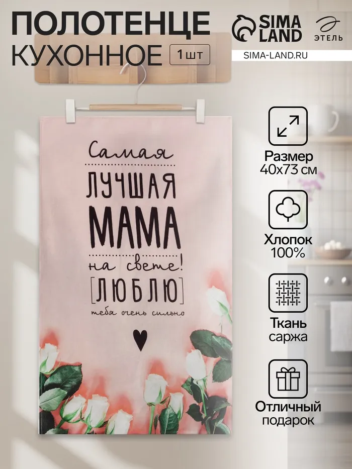 Полотенце "Этель" Мама 40х73 см, 100% хл, саржа 190 гр/м2