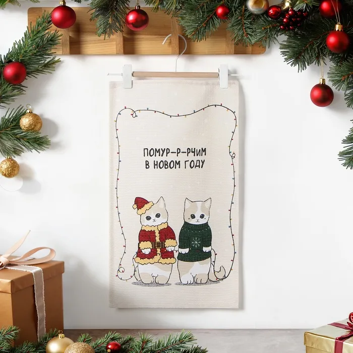 Полотенце Доляна «Помурчим в новом году» 28×46 см, 100% хл, вафля 160 г/м²