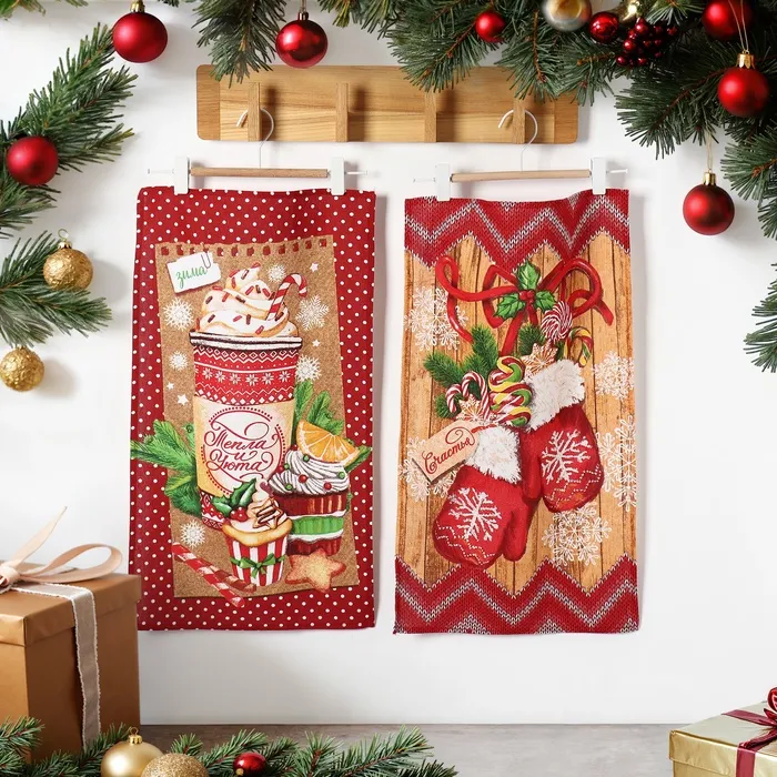 Набор кухонных полотенец Доляна «Тепла и уюта» 35х60см-2шт, 100% хлопок
