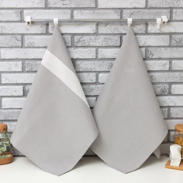Набор полотенец «Этель» 2 шт., серый, 100% хлопок, рогожка 163 г/м²
