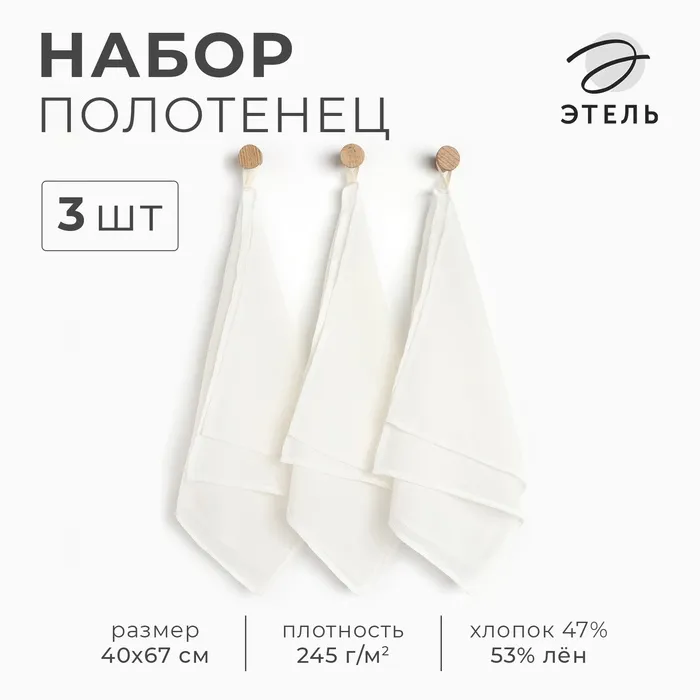 Набор полотенец Этель Base 40х67см, 3 шт., хл.47%, лён 53%