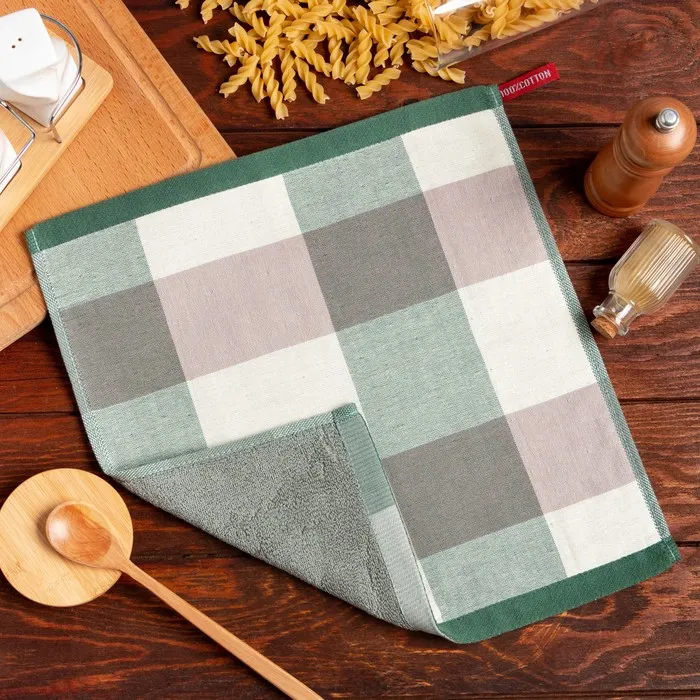 Полотенце Доляна «Клетка» цв.зелёный 35*35 см, 100% хлопок