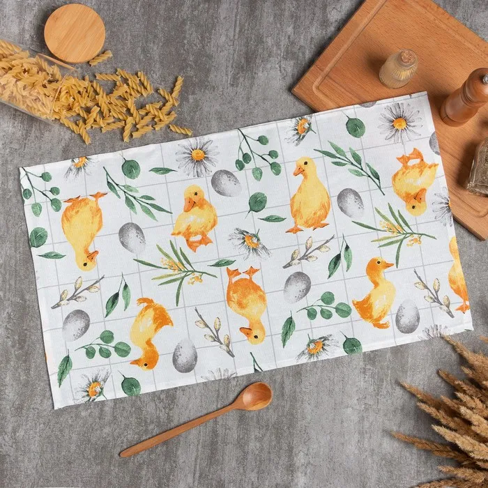 Полотенце Доляна "Цыплёнок и куличи" 35х60 см, 100% хл, рогожка 164 г/м2