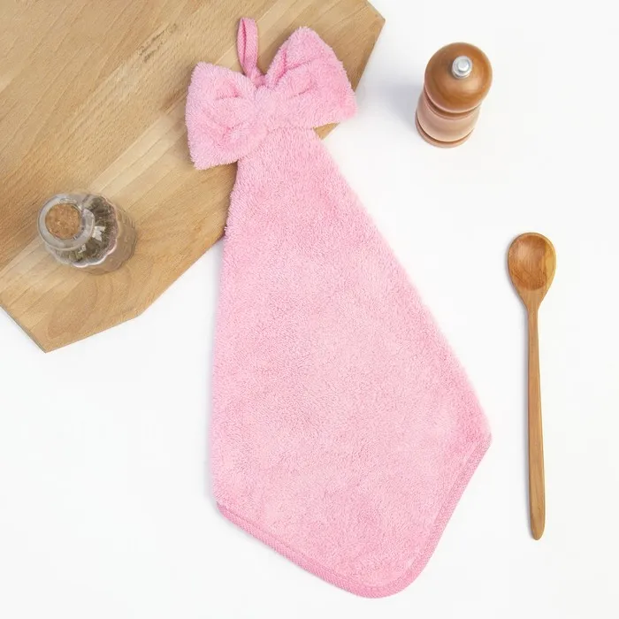 Кухонное полотенце Доляна "Бантик"цв.розовый 28х40 см, микрофибра, 100% п/э