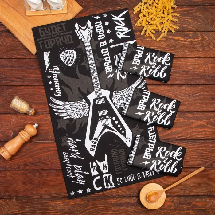 Набор кухонных полотенец Доляна Les't rock, 35х60 см - 4 шт, 100% хл