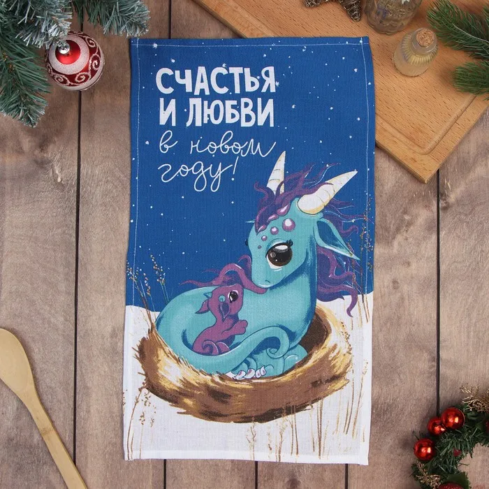 Набор новогодних кухонных полотенец Доляна «Волшебство» 35х60см-4 штуки, 100% хлопок