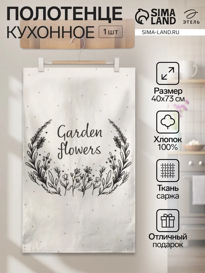 Полотенце "Этель" Garden flowers 40х73 см, 100% хлопок, саржа 190 г/м2