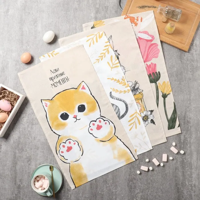 Набор полотенец кухонный Доляна "Лови приятные моменты" 35х60см-4шт, 100% хлопок
