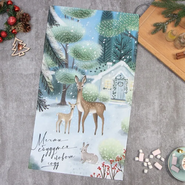 Полотенце новогоднее "Этель" "Мечты сбудутся" 40х73 см, 100% хл, саржа 190 г/м2