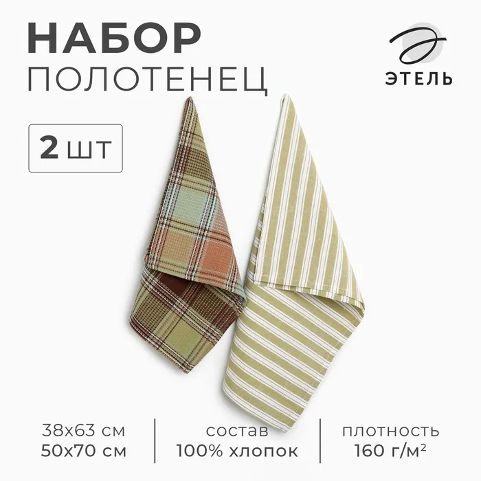 Набор полотенец Этель Greenway 38х63см, 50х70см, хл. 100%