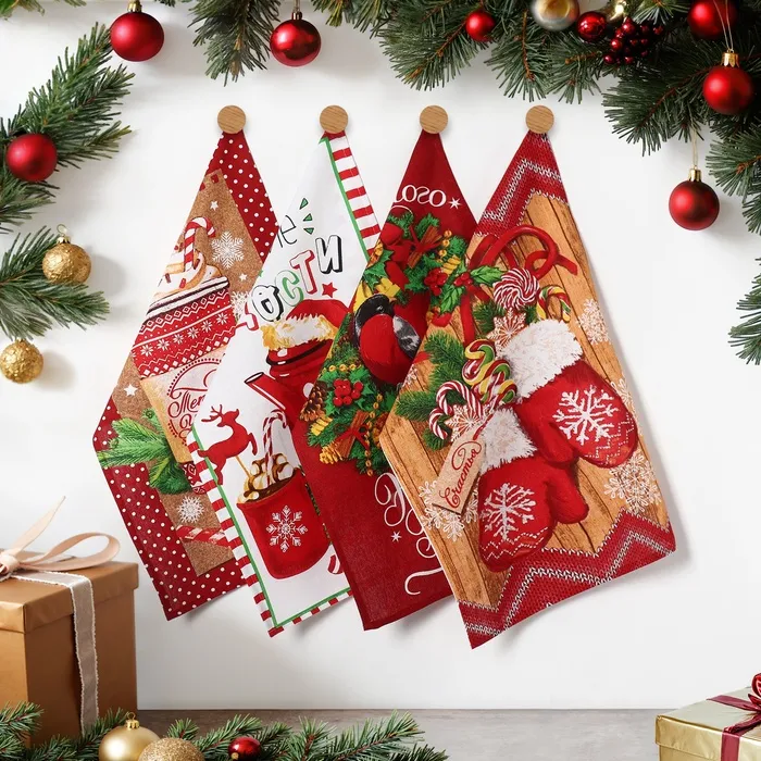 Набор новогодних кухонных полотенец Доляна «Сказочного Нового года» 35х60см-4 штуки, 100% хлопок