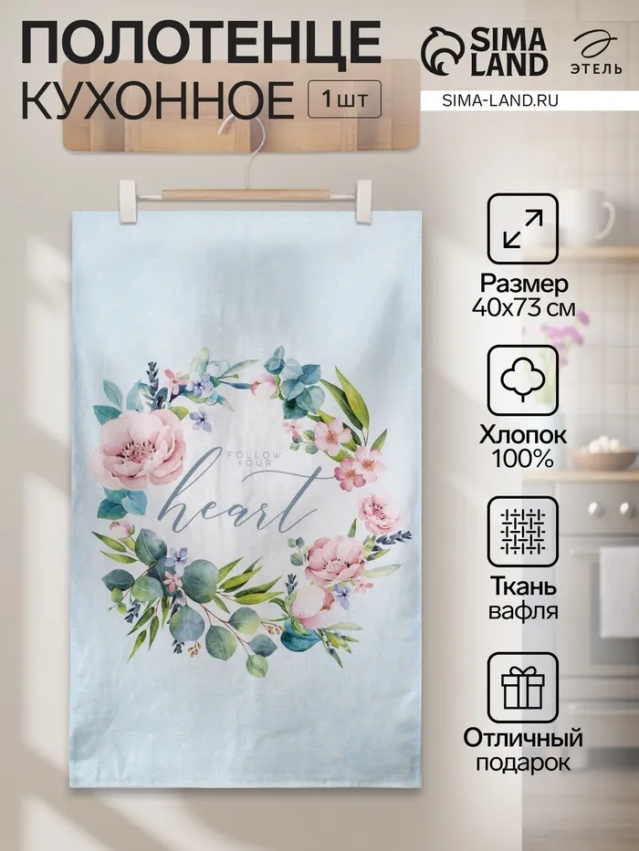 Набор кухонных полотенец Доляна «Все цветы «Для тебя»,» 35х60 см - 2шт, 100% хл