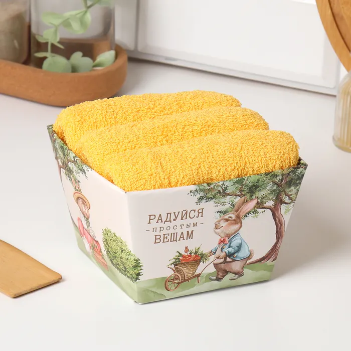 Набор полотенец Этель «Радуйся простым вещам» 35×50 см - 3 шт., 100% хлопок, махра 340 г/м²