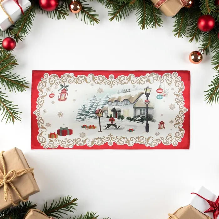 Полотенце новогоднее кухонное "Этель" "Снежная деревенька" 40х70 см, 100% хл, саржа 190 г/м2