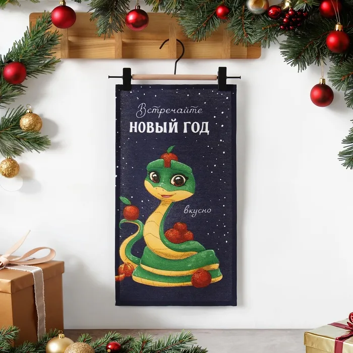 Полотенце Доляна "Встречайте новый год вкусно" 28х46 см, 100% хл, рогожка 164 г/м2