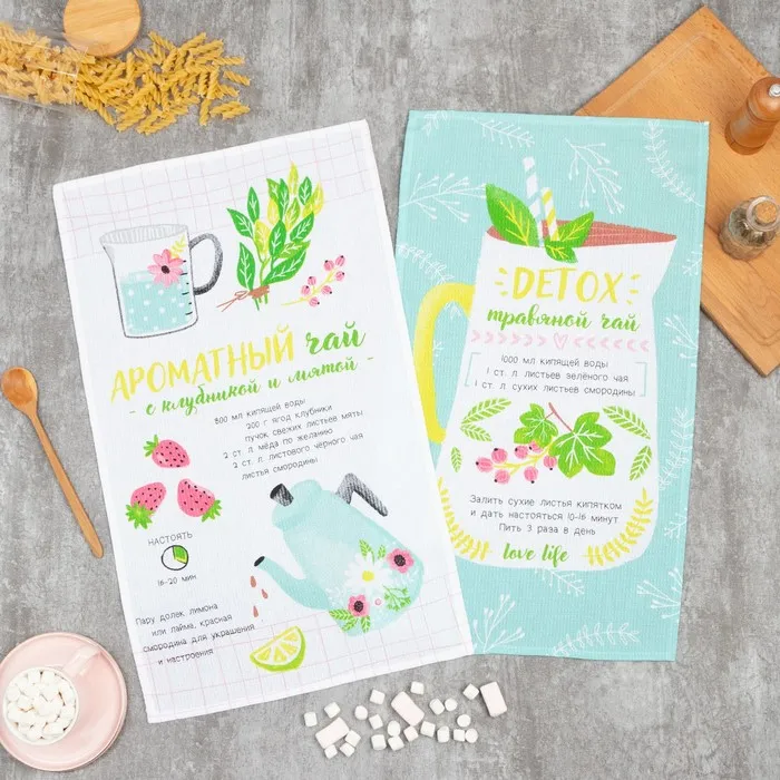 Набор кухонных полотенец Доляна «Ароматный чай», 35×60 см-2 шт., 100% хлопок, вафля 160 г/м²